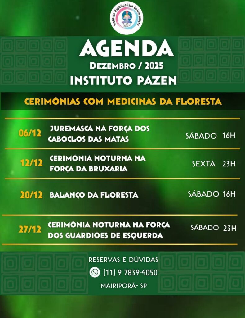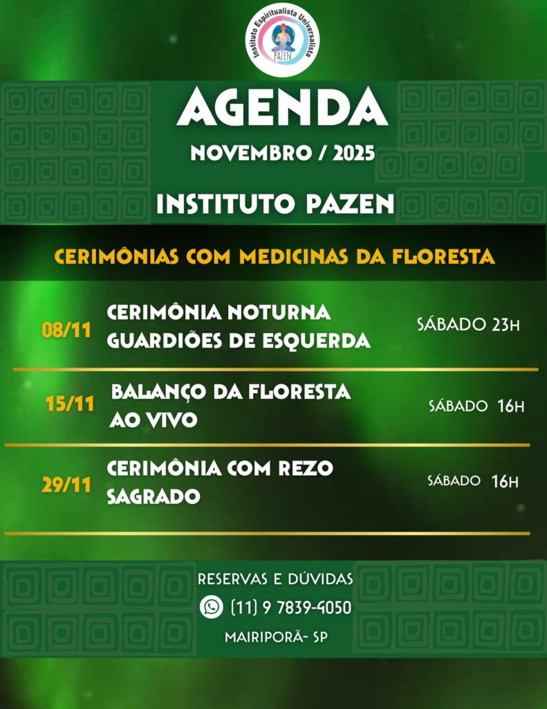 Conecte-se com a sua essência. Convidamos você a descobrir nossa agenda de agosto e setembro de 2025 no Instituto Pazen, em SP, com cerimônias de Ayahuasca, Balanço da Floresta e outras vivências
