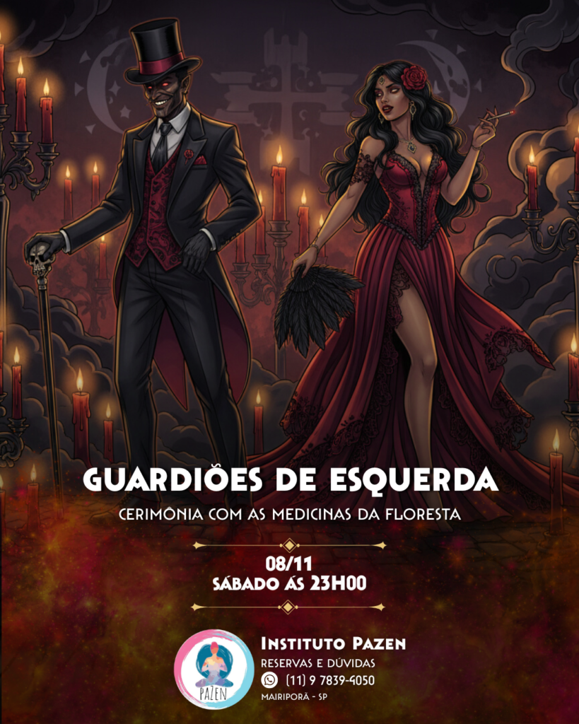 Te convidamos para uma jornada com a medicina da ayahuasca, guiada pela força dos guardiões Exu e Pombagira. Exu abre os caminhos, rompe bloqueios e ensina a caminhar com verdade. Pombagira acessa as emoções, desperta o feminino sagrado e resgata o prazer de ser quem se é. É um chamado à ação, ao corpo, à alma. Uma conexão com a essência que vive em você — livre, inteira e verdadeira.